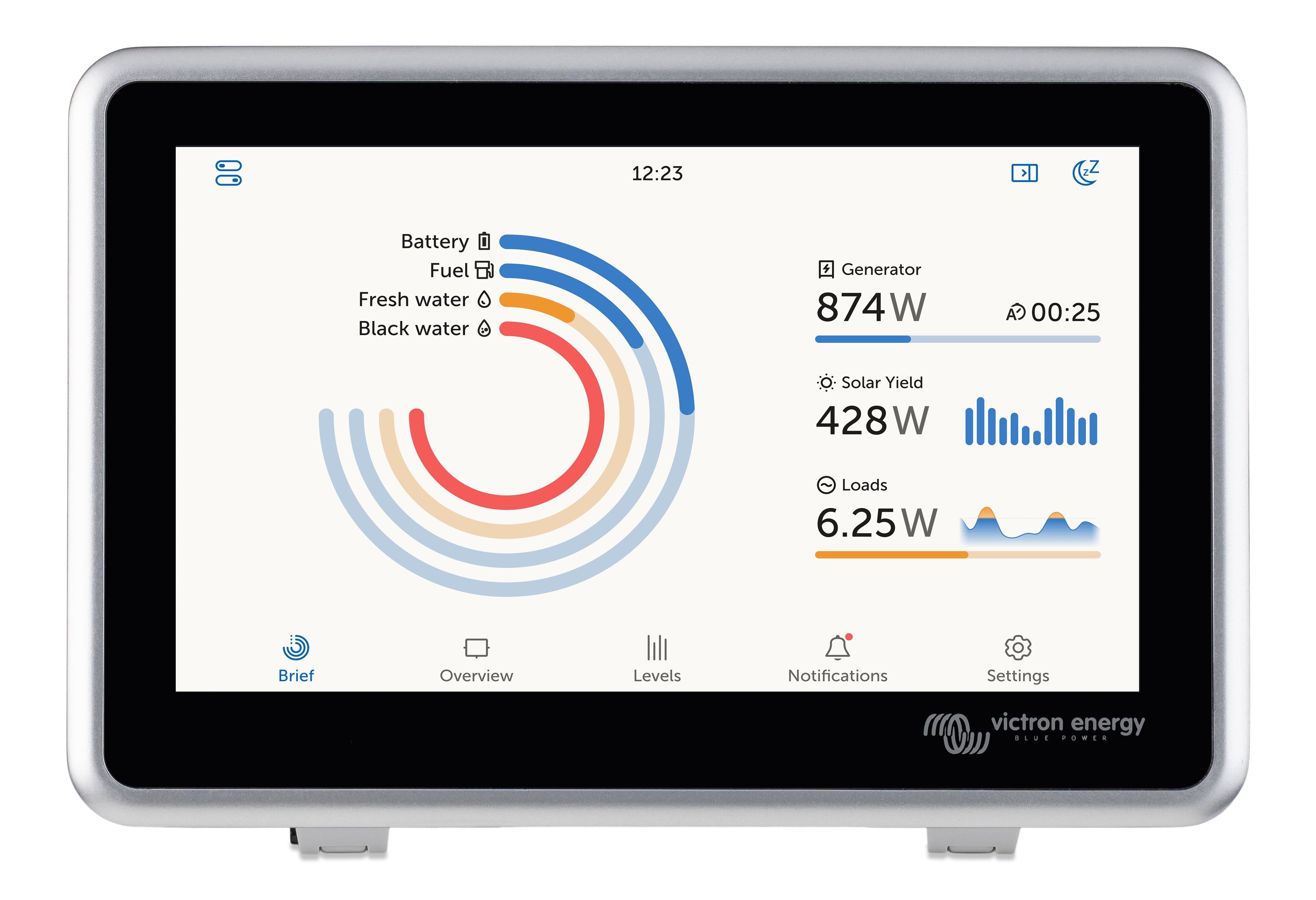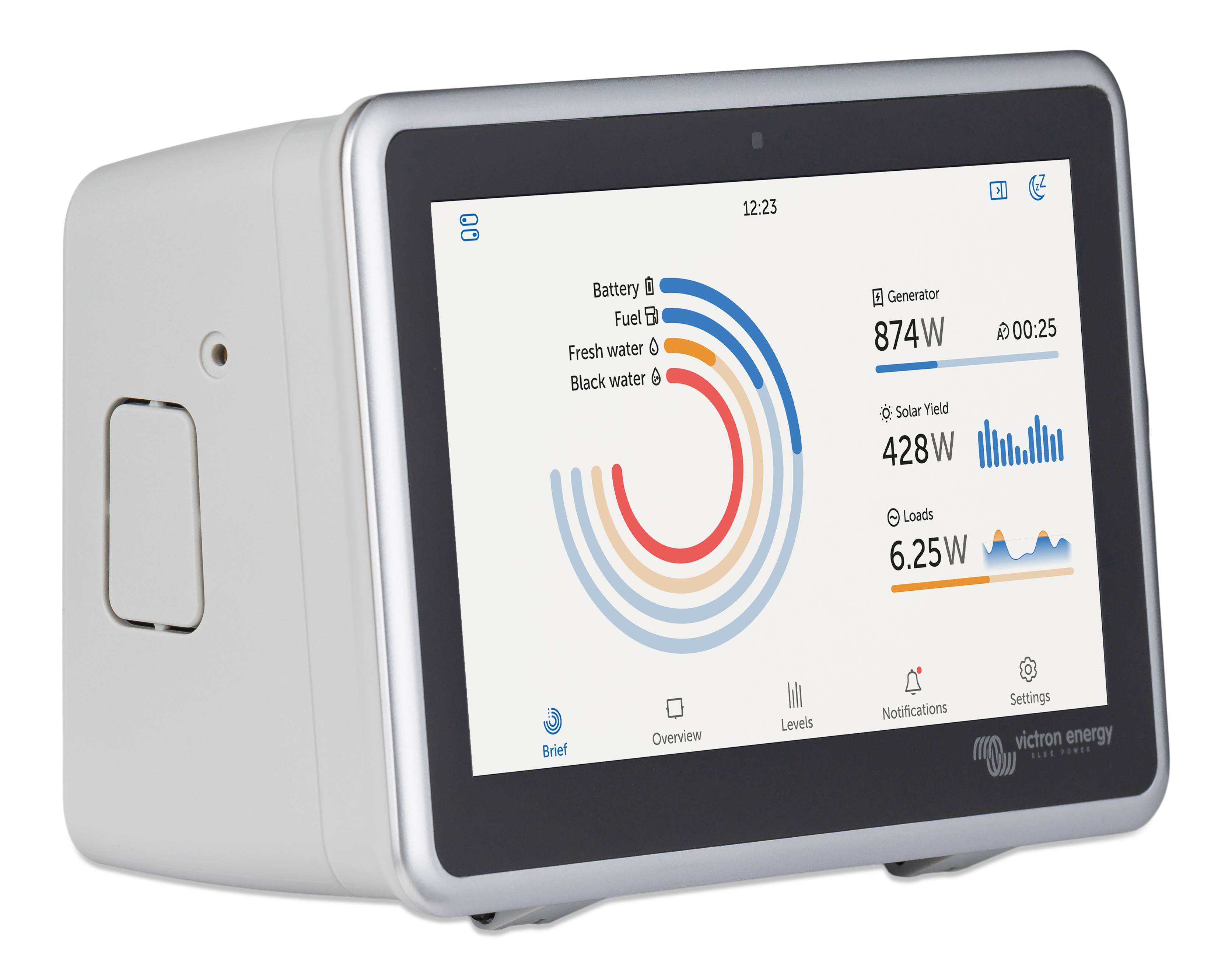 The Ekrano GX Wall Mount accessory enables quick and secure installation on a solid wall. Only four screws are needed, with no additional drilling or cut-outs required.