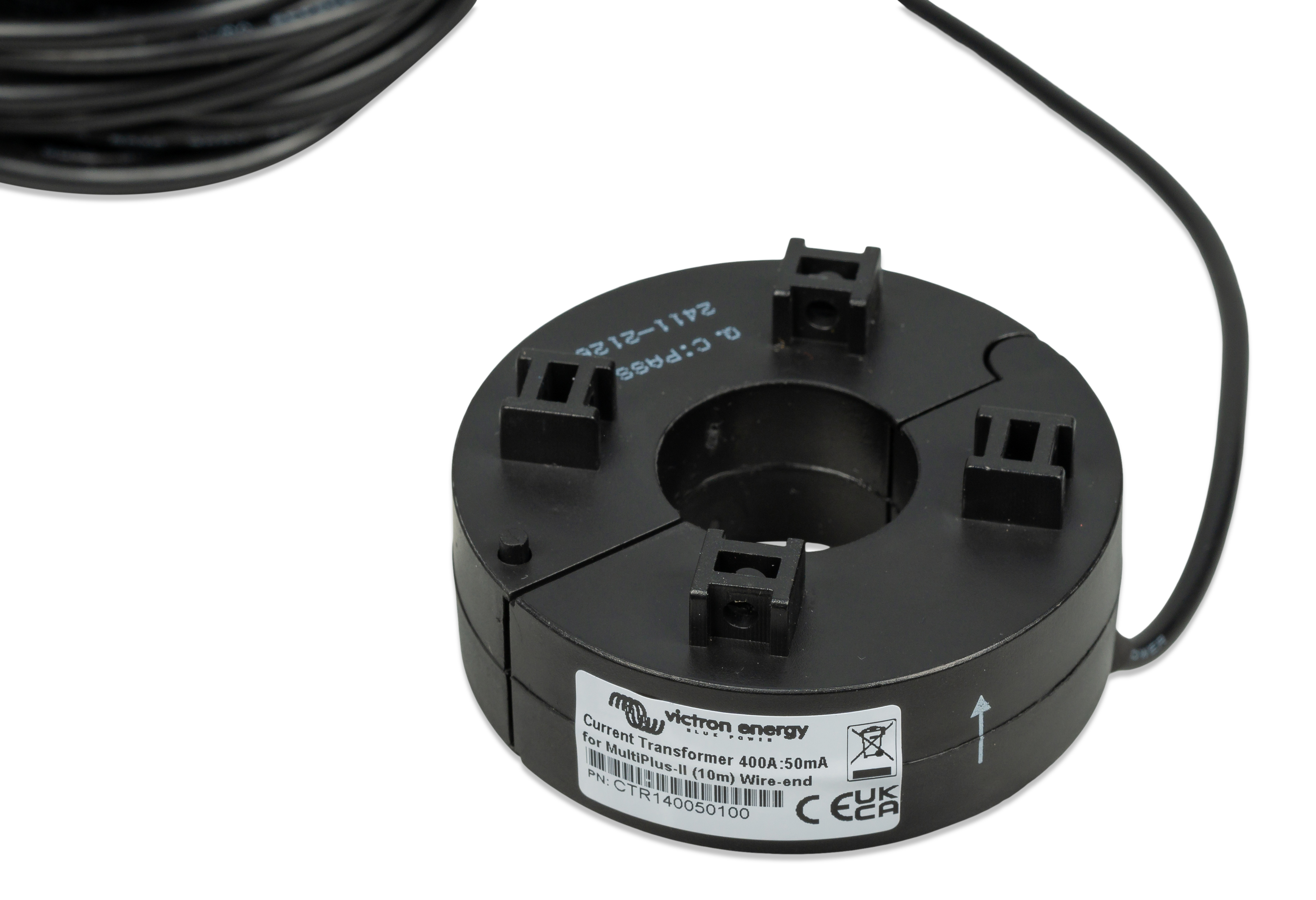 Transformateur de courant 400 A:50 mA pour MultiPlus-II (10 m). Extrémité filaire : dispose d'une extrémité filaire et d'une longueur de câble de 10 mètres.