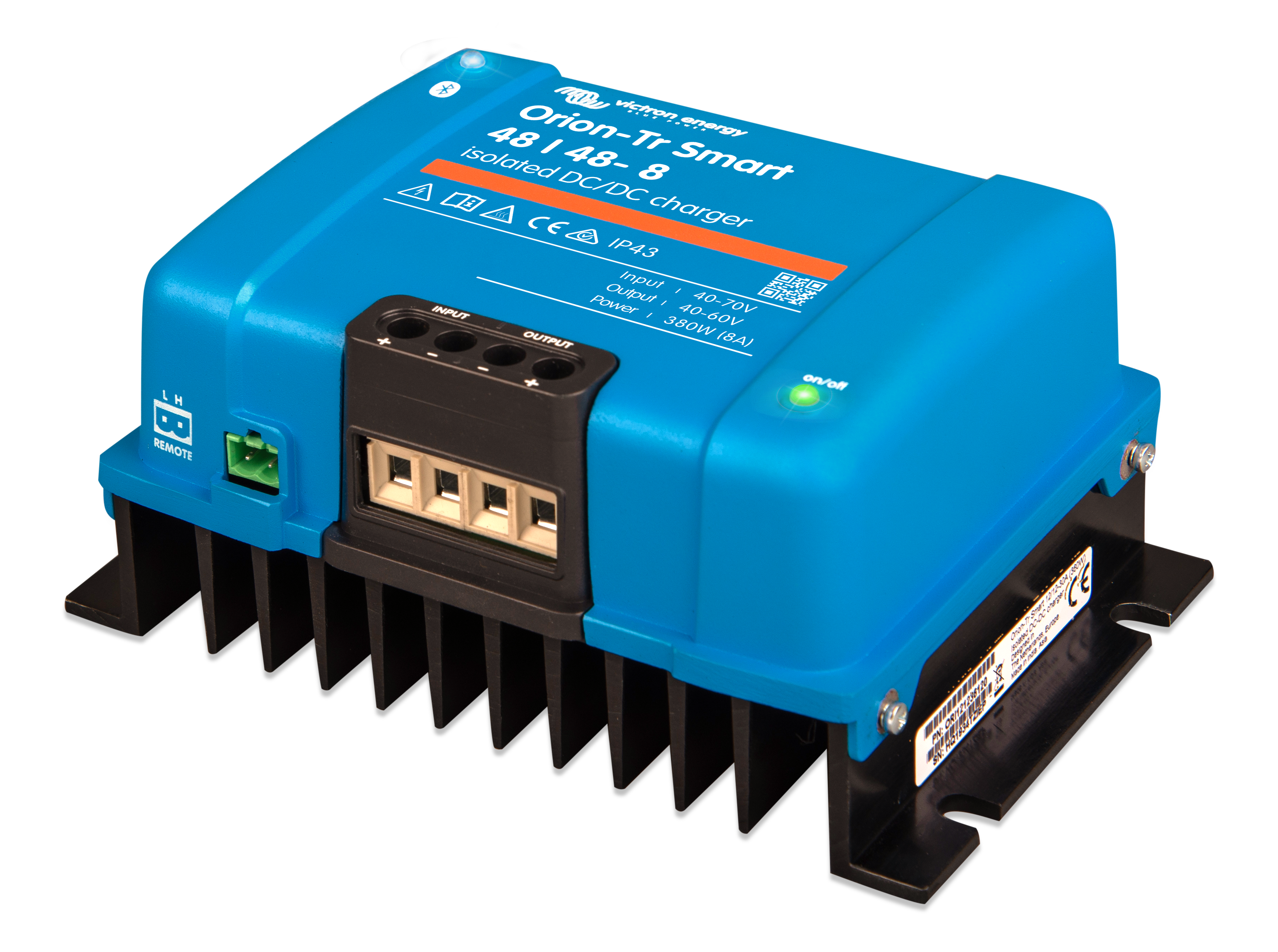 Le chargeur Orion-Tr Smart peut être utilisé dans des systèmes de 12, 24 ou 48 V, et il s'adapte à la fois aux batteries au plomb et au lithium. Les modèles sont disponibles jusqu'à une puissance de 400 W, et un nombre illimité de plusieurs unités peut être raccordé en parallèle pour augmenter la puissance de sortie.